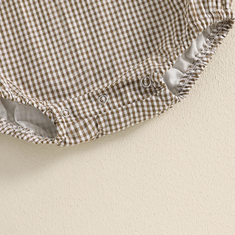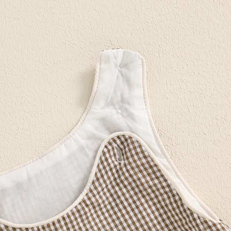 0-18M Newborn Baby Summer Tank Romper Plaid Print Sleeveless Round Neck Jumpsuit for Boys and Girls