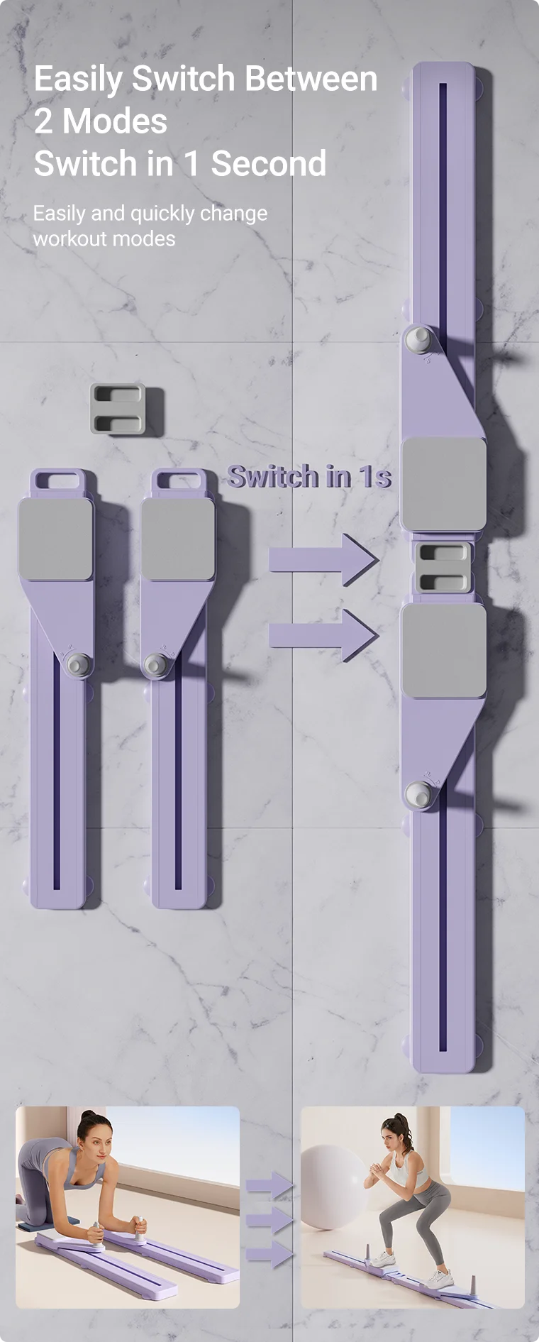2-in-1 Abs & Ski Board - Portable Core/Leg Trainer, Split Pilates-Reformer for Home Gym, Lightweight Full-Body Fitness