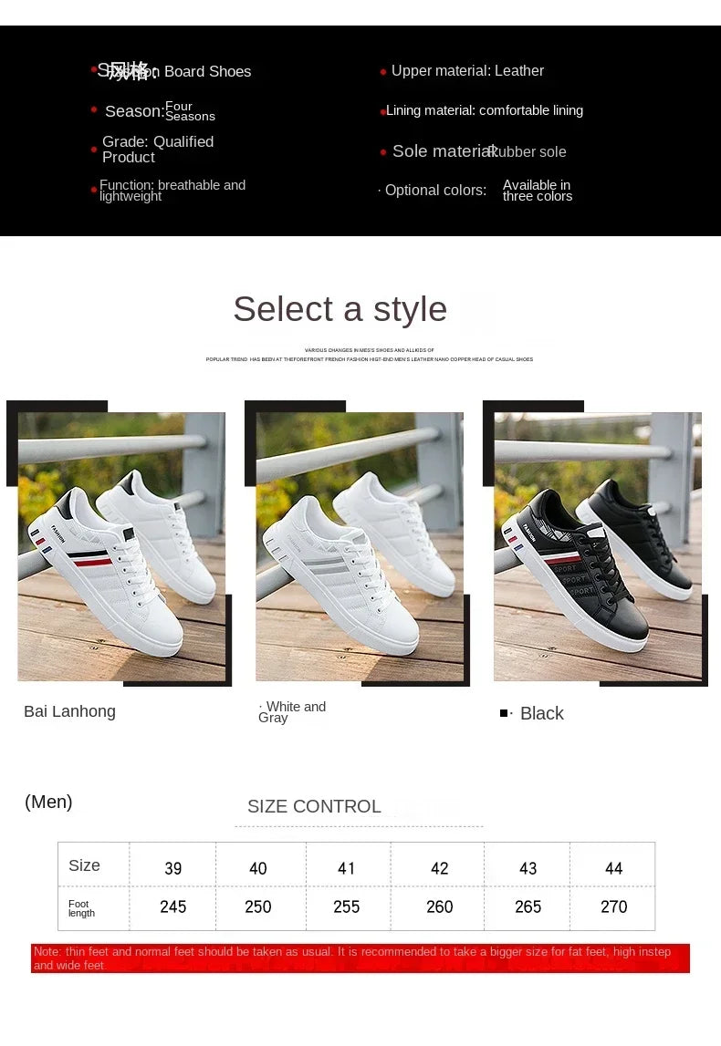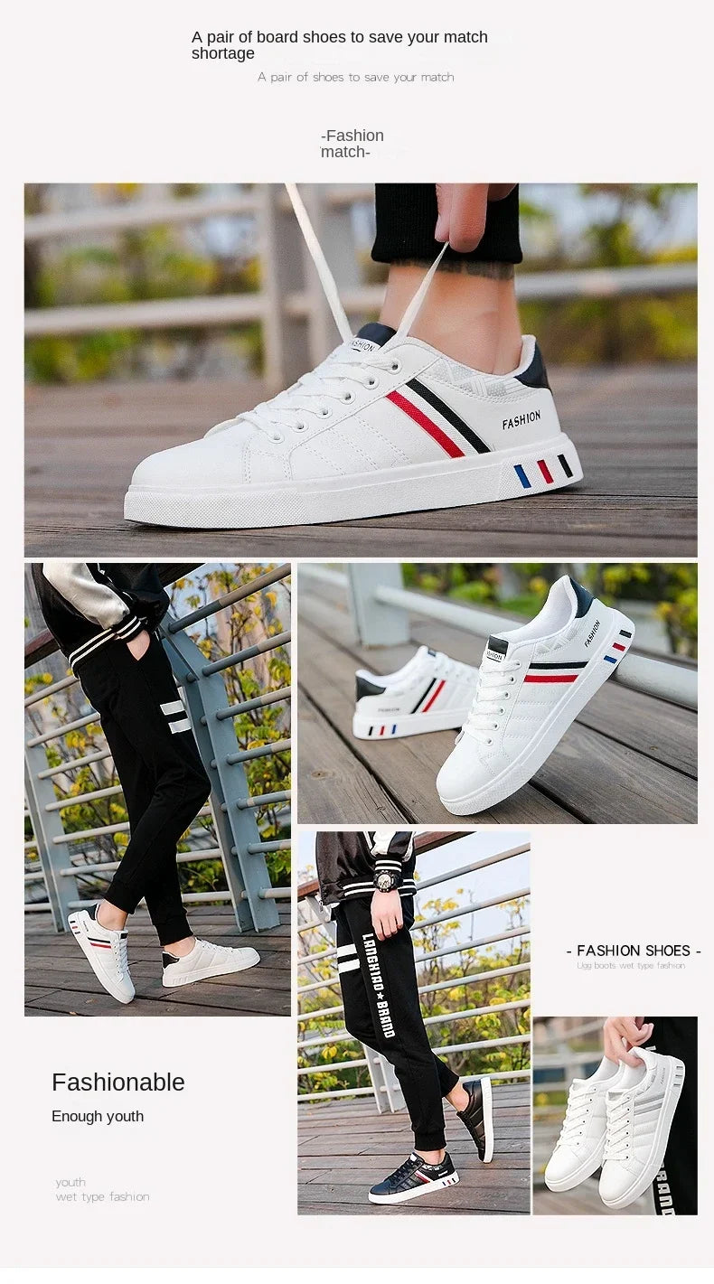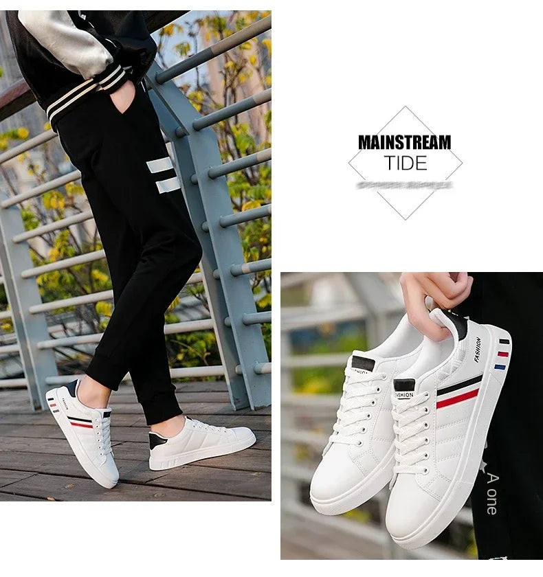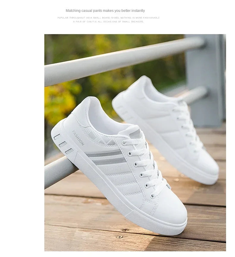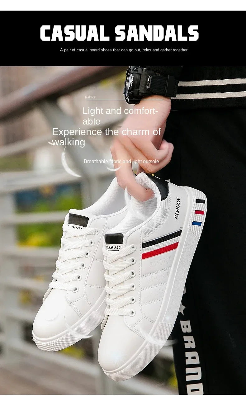 2024 Mens Casual Sneakers New Fashion Lace-up White Shoes Student Comfort Sports Plus Size Vulcanized Shoes Zapatillas De Hombre