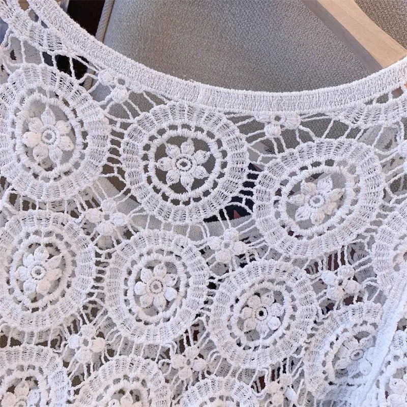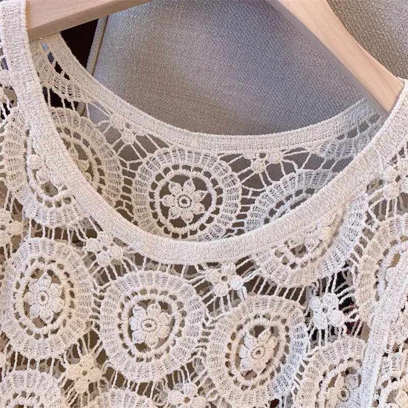 2025 Lace Chic Women's Short French Style Hollowed-out Knitted Sweater Pullover Korean Style New Loose Summer New Top