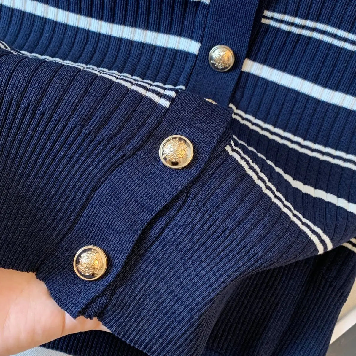 2025 Summer New Temperament Korean Embroidered V-neck Sleeveless Knitting Tank Top Female Fashion Striped Buttons T-Shirts Tops