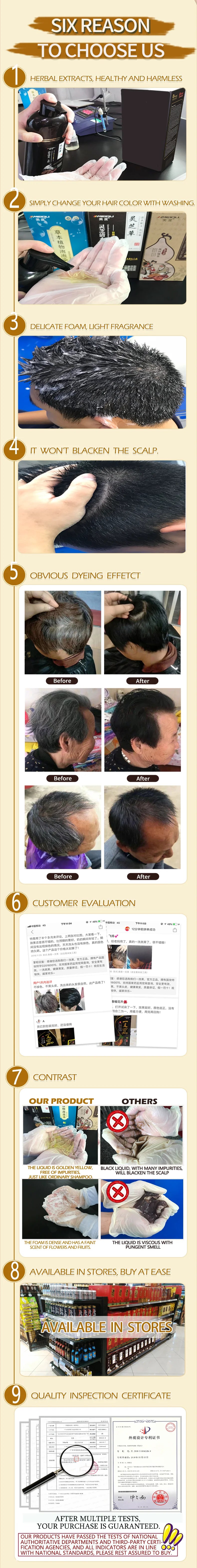 2. Easily dye your hair black within 15-25 minutes by washing, without dyeing the scalp, and the effect is long-lasting.