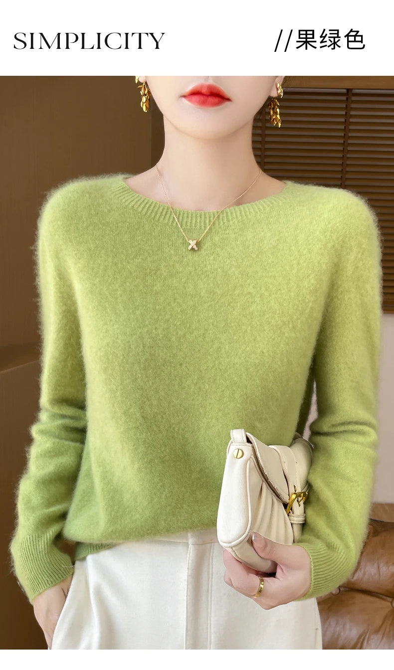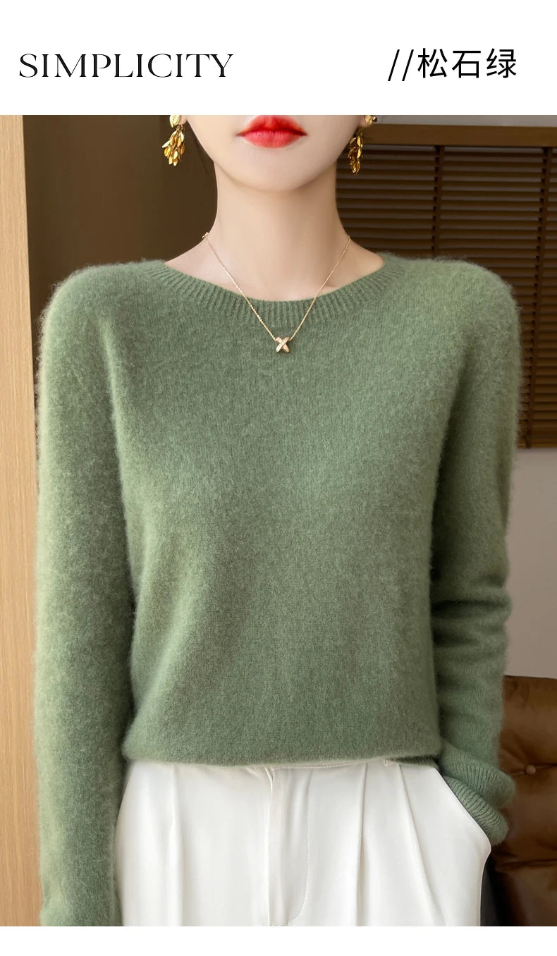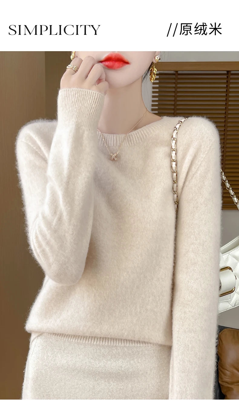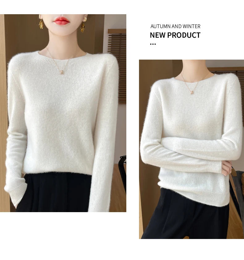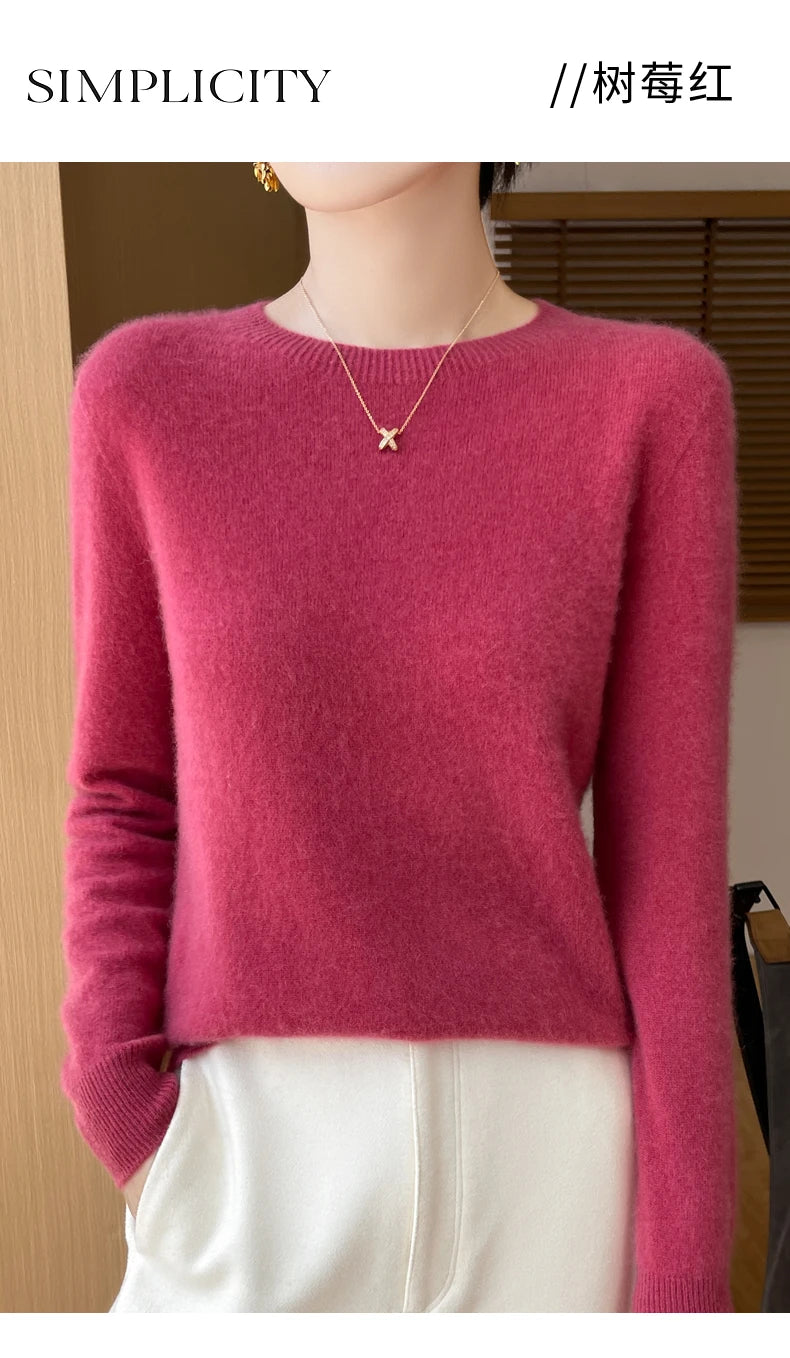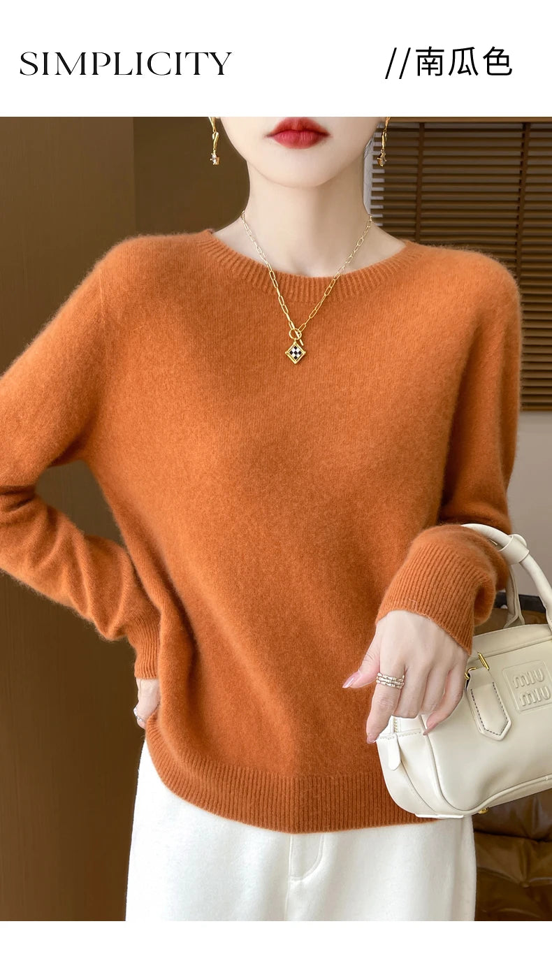 Autumn Winter Women Clothing O-Neck Pullover 100% Merino Wool Sweater New Fashion Cashmere Tops Bottoming Long Sleeve Knitwear