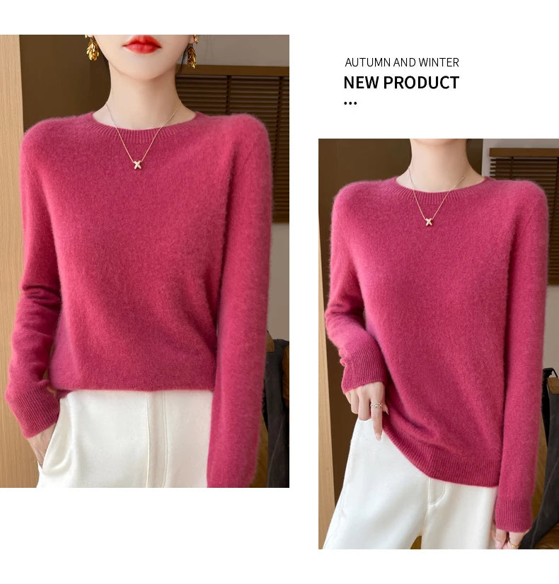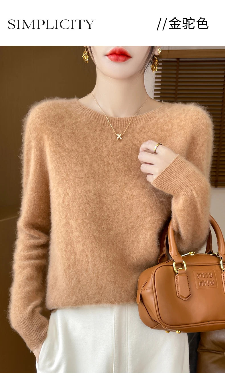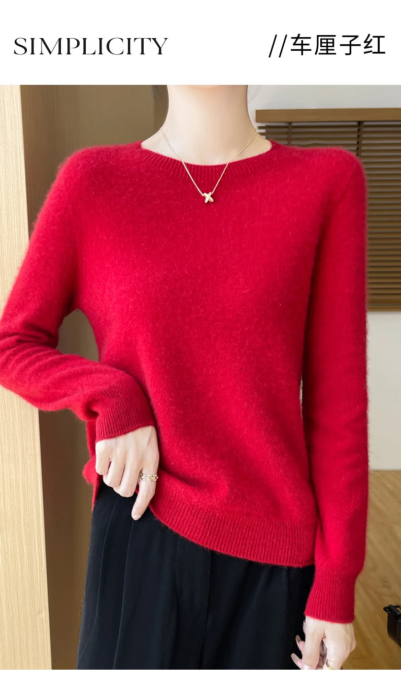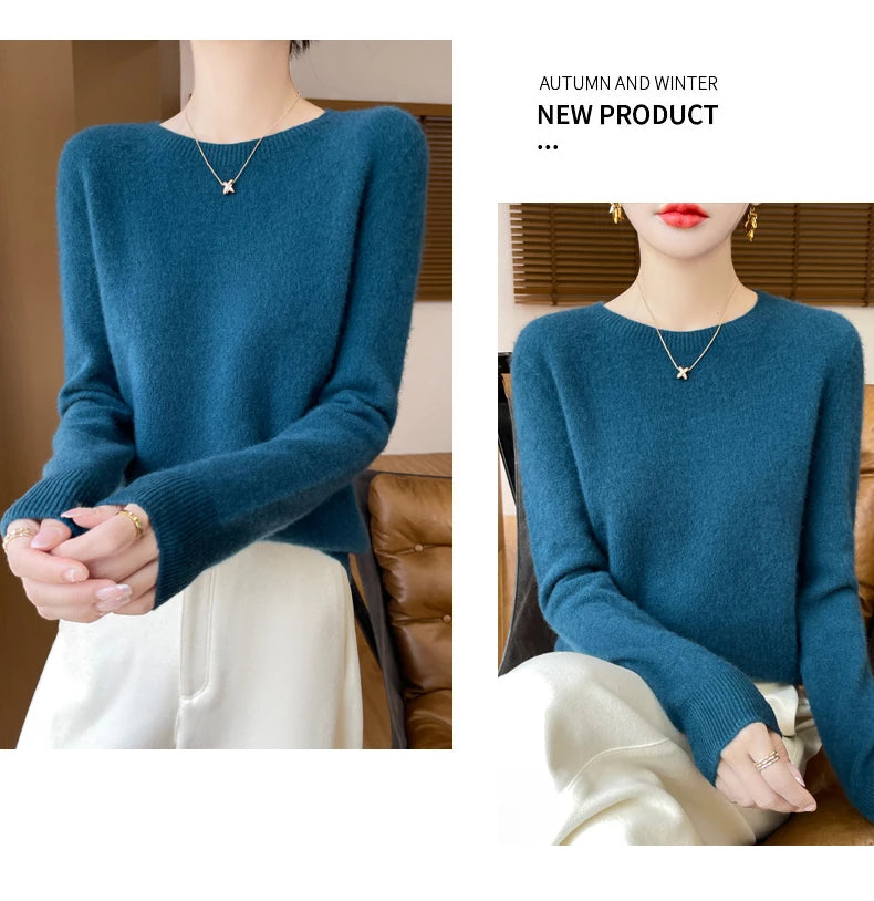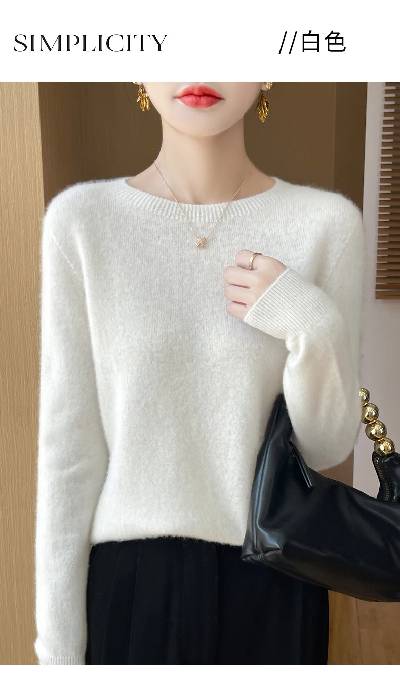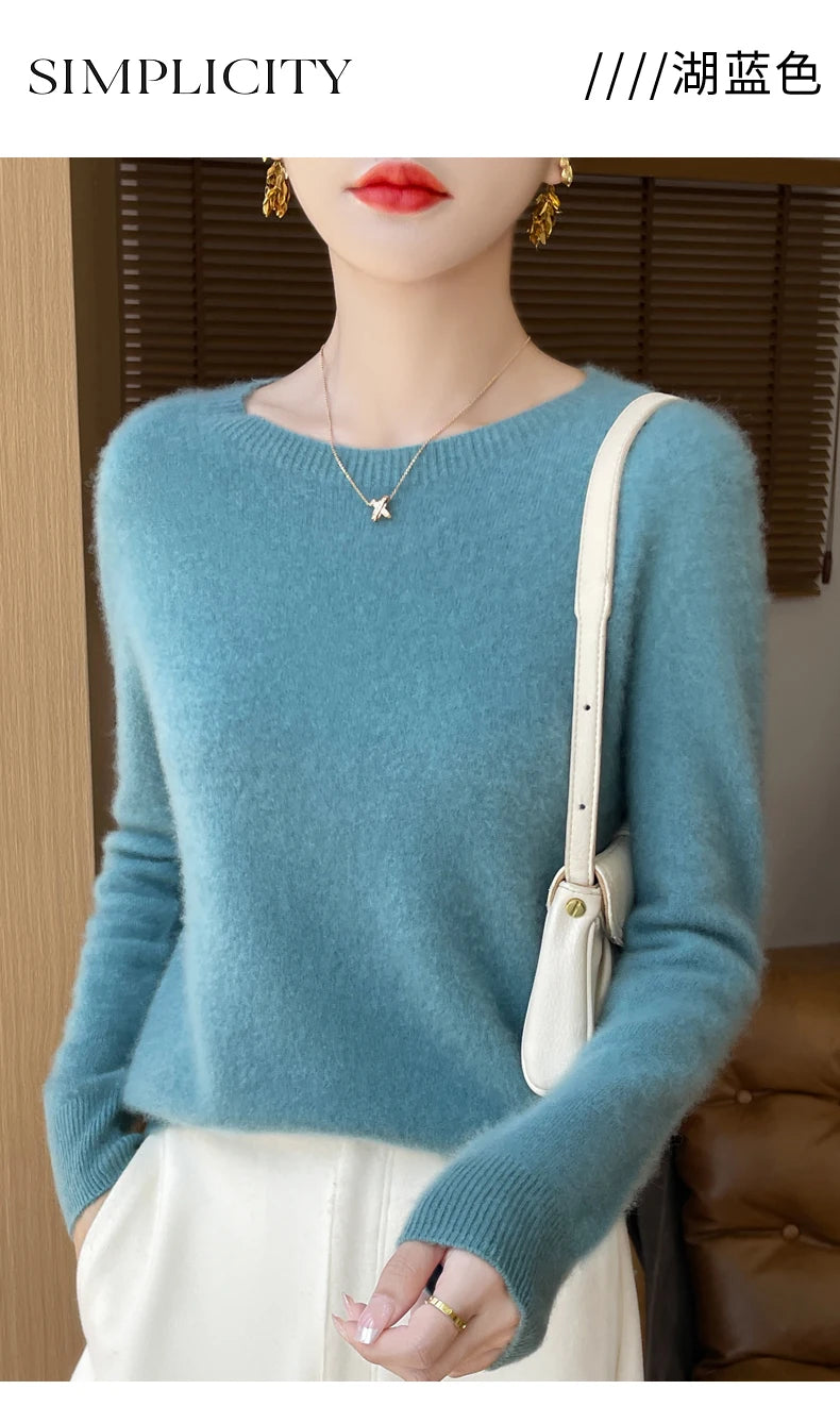 Autumn Winter Women Clothing O-Neck Pullover 100% Merino Wool Sweater New Fashion Cashmere Tops Bottoming Long Sleeve Knitwear