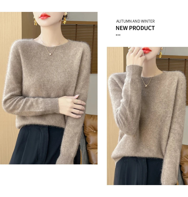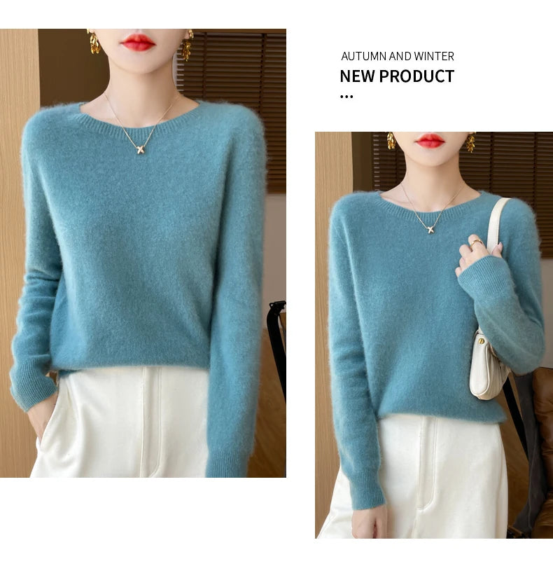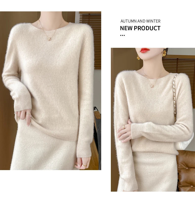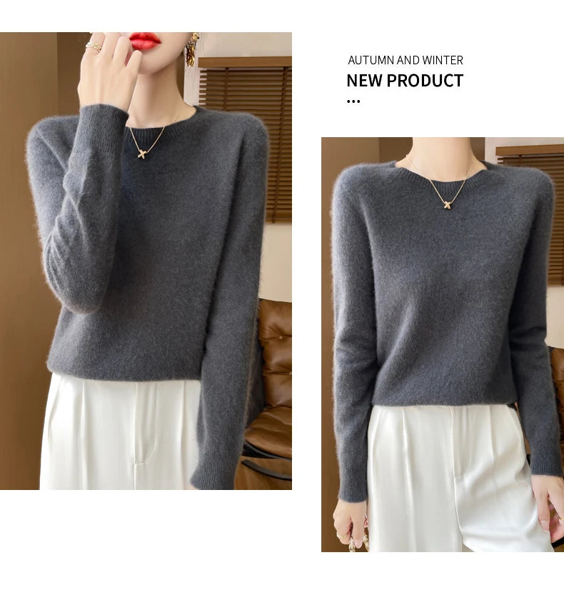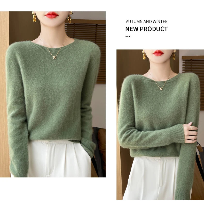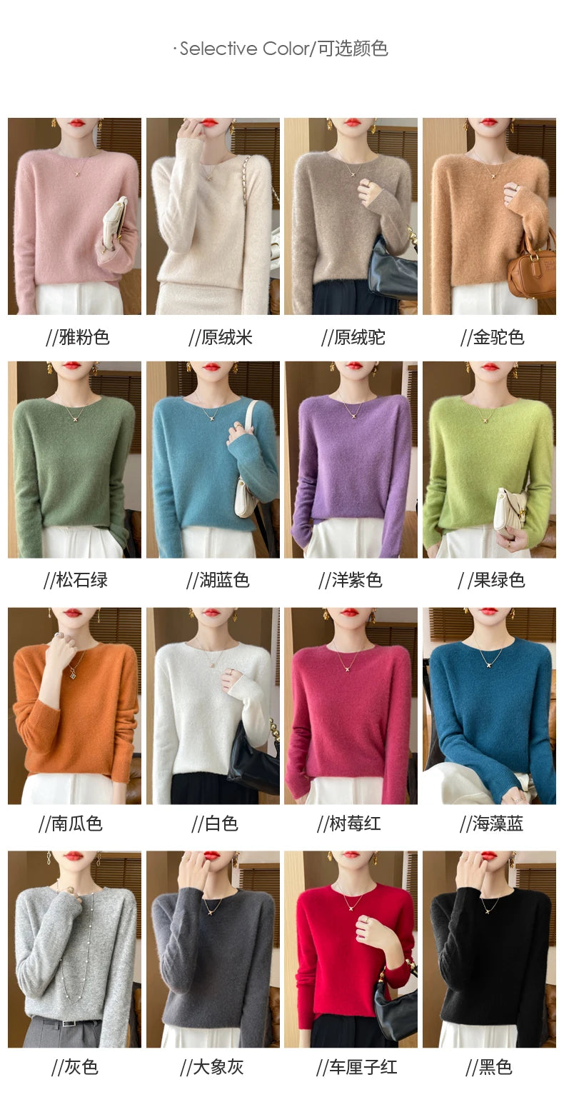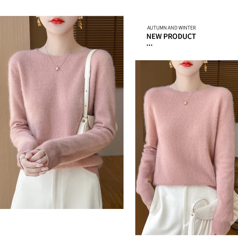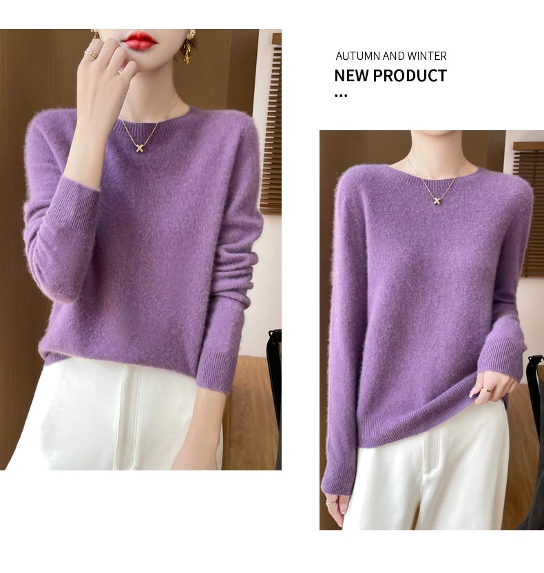 Autumn Winter Women Clothing O-Neck Pullover 100% Merino Wool Sweater New Fashion Cashmere Tops Bottoming Long Sleeve Knitwear