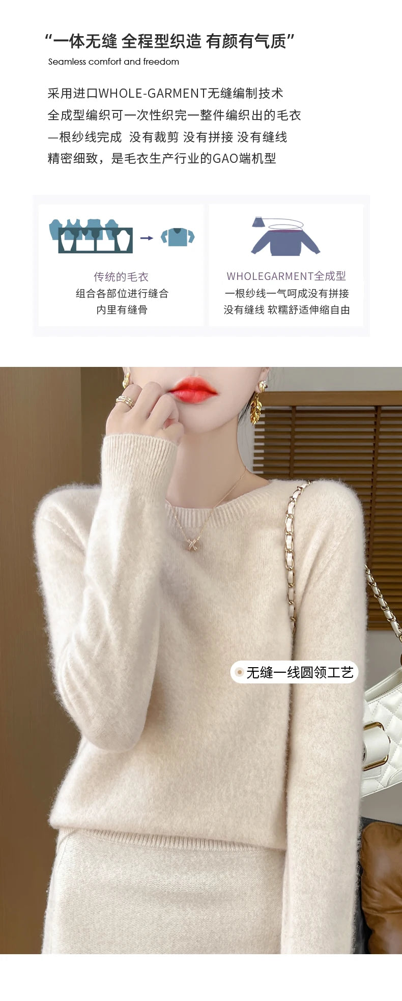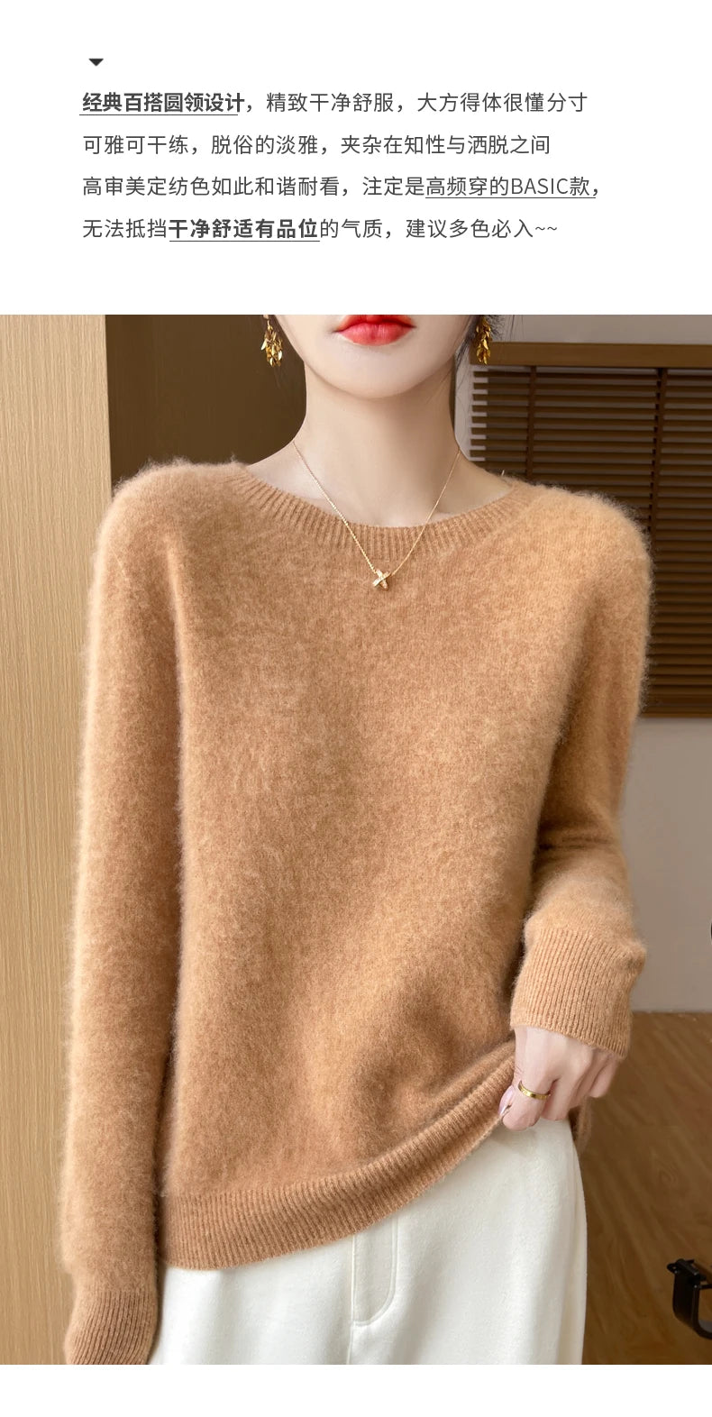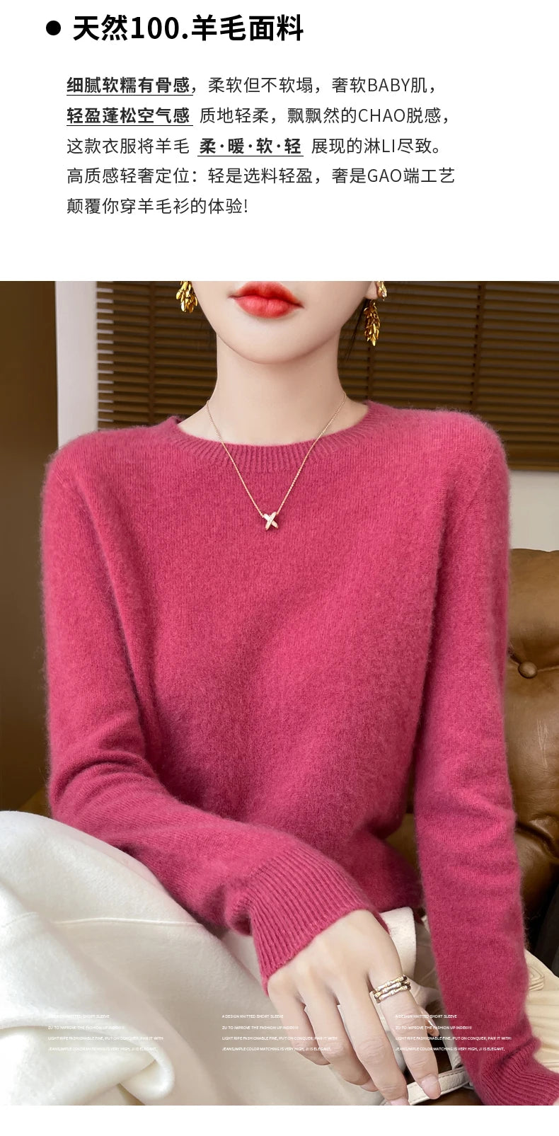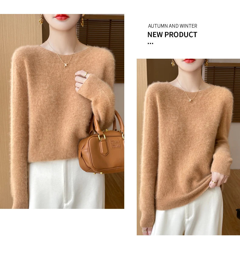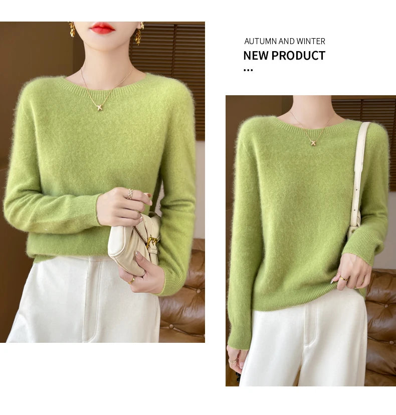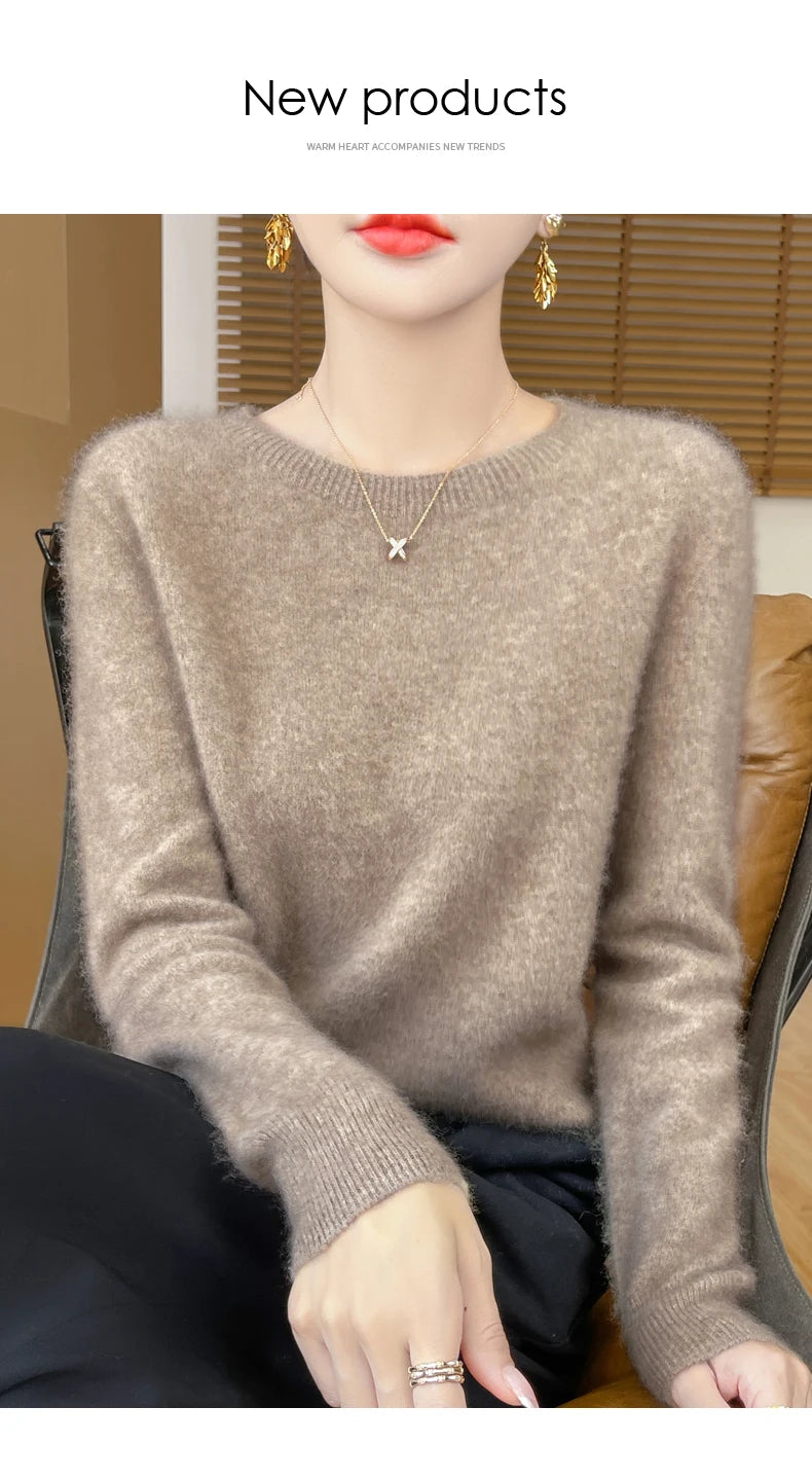 Autumn Winter Women Clothing O-Neck Pullover 100% Merino Wool Sweater New Fashion Cashmere Tops Bottoming Long Sleeve Knitwear