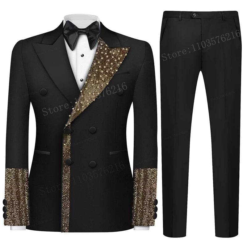 B01 Luxury 2 Piece Men's Suit Tailcoat Application Single Button Lapel Satin Formal Pearl Party Wedding Groom Jacket Suits