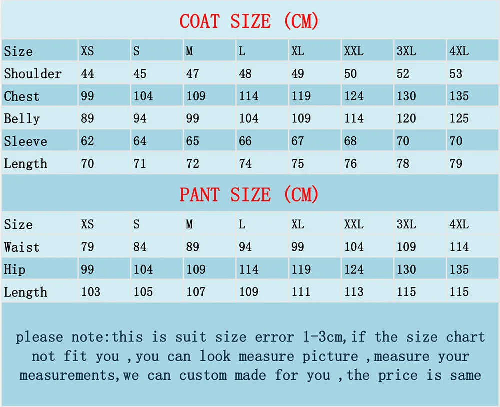 10 .Jacket Length Or Inches 11. Pants Length cm Or Inches 12 .Pants Thigh_cm Or Inches