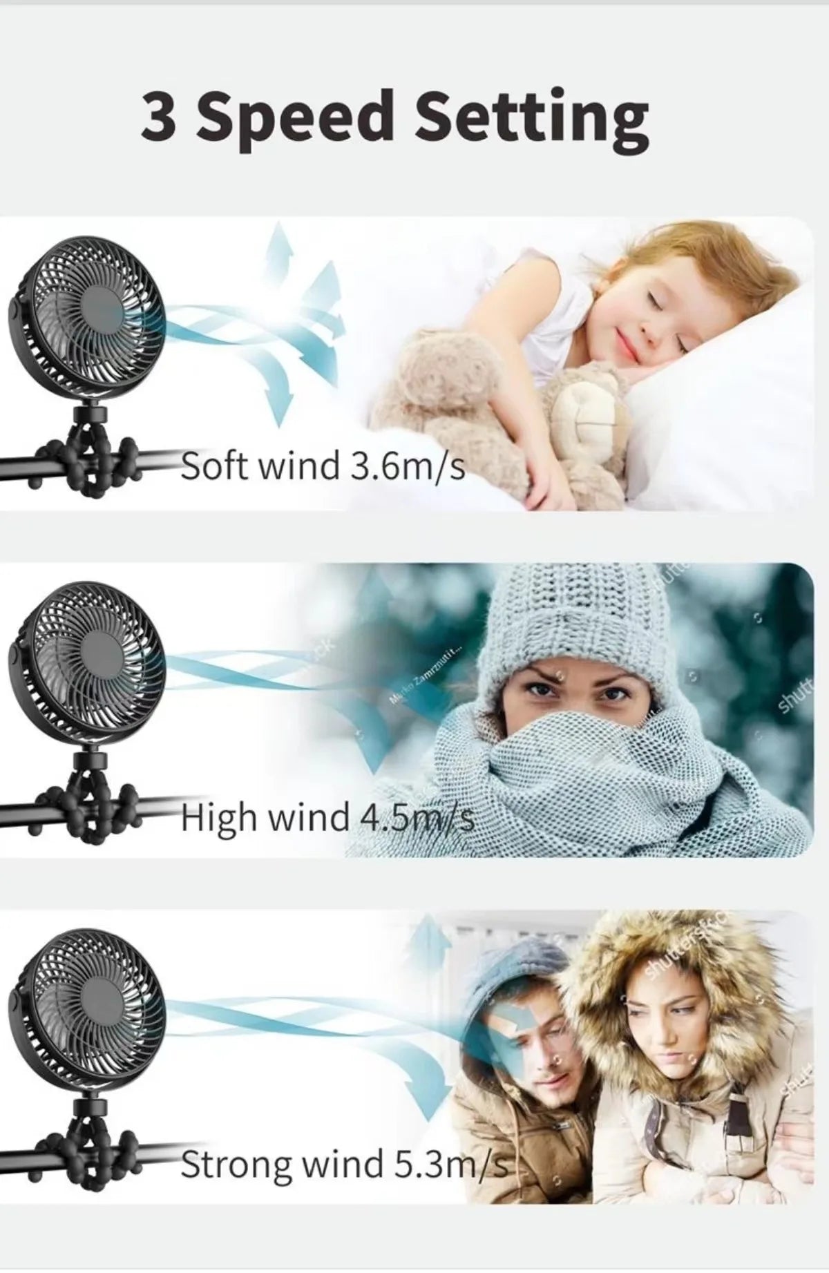 Model Number: Baby 3 Speeds Stroller Mini Fans Portable USB Charging Small Fan