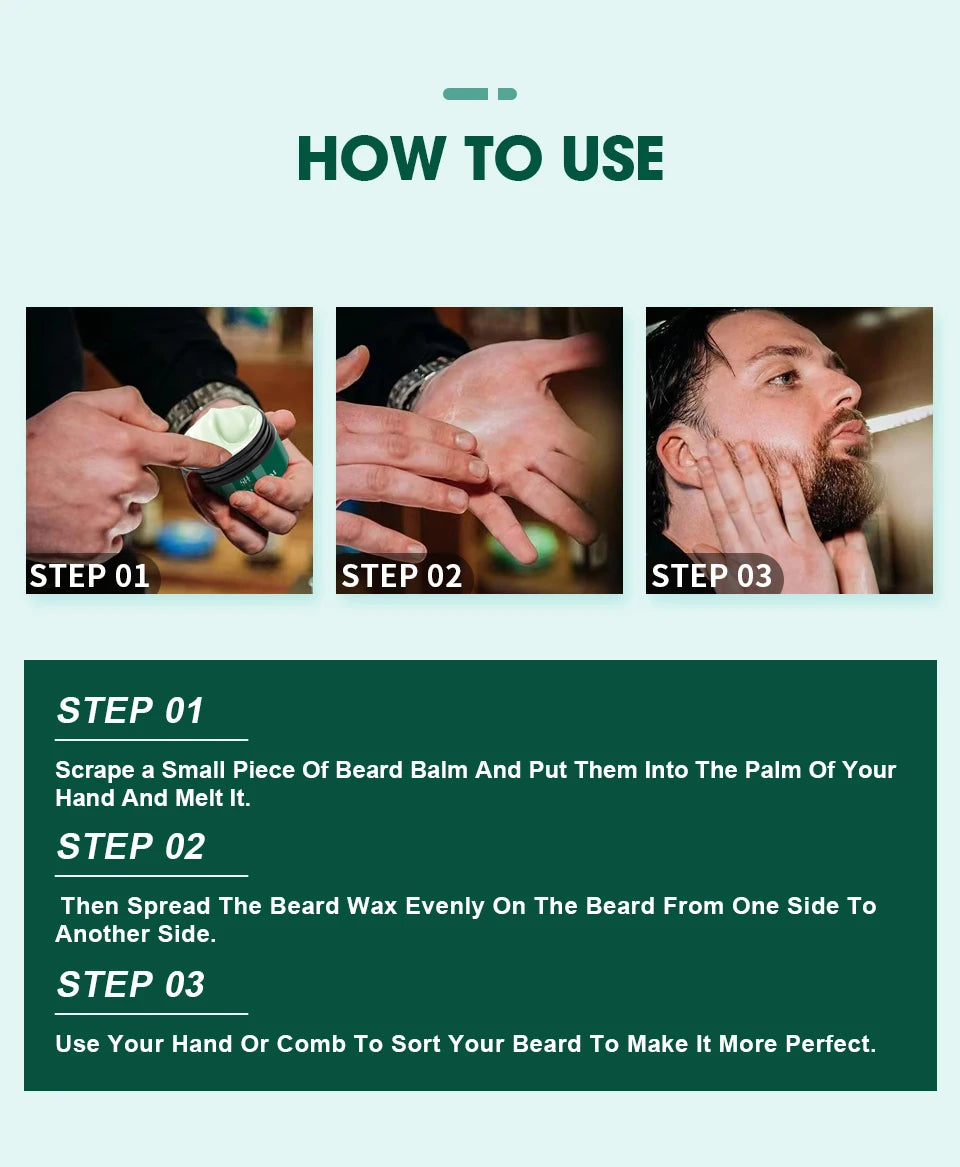 Take an appropriate amount of ointment and apply it to the beard to make it soft, moisturized, smooth and shiny.