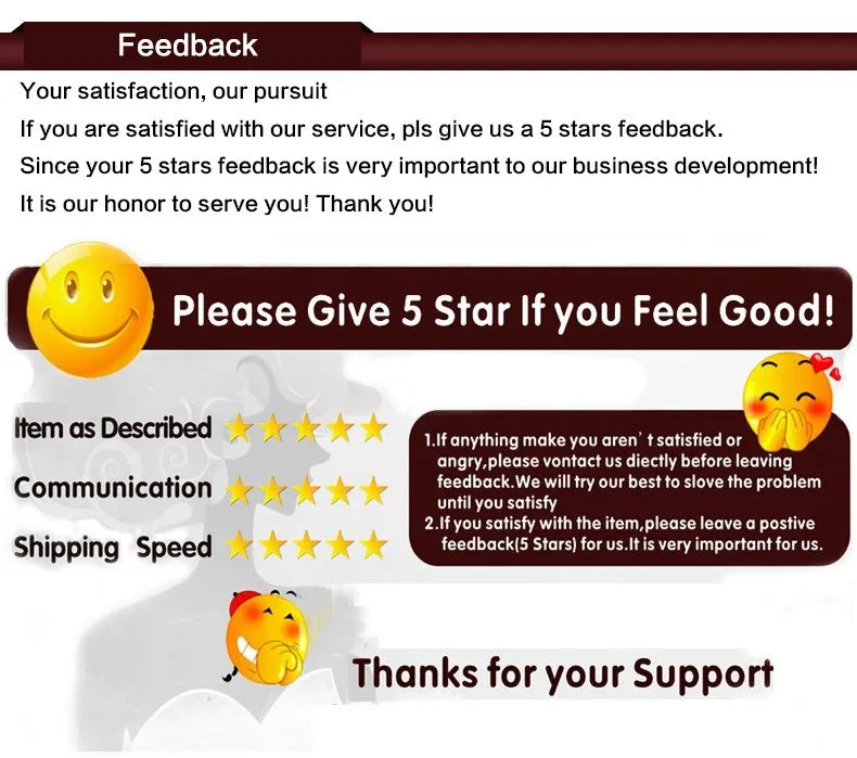 1. Your satisfaction and positive feedback is very important to us. Please give us a positive feedback and 5 stars if you are satisfied with our shoes and services.
