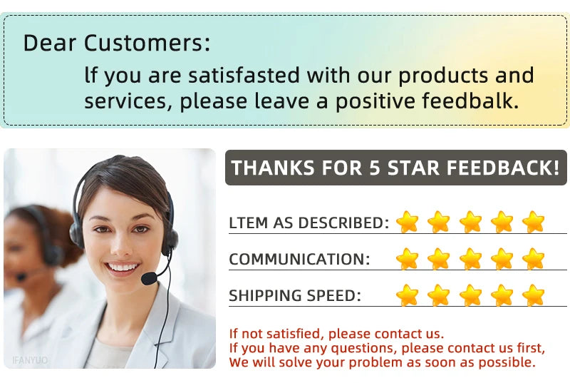 4. Please leaving a message before you give the bad feedback, if the products have some problems. IFANYUO thanks for your understandings ifanyuo