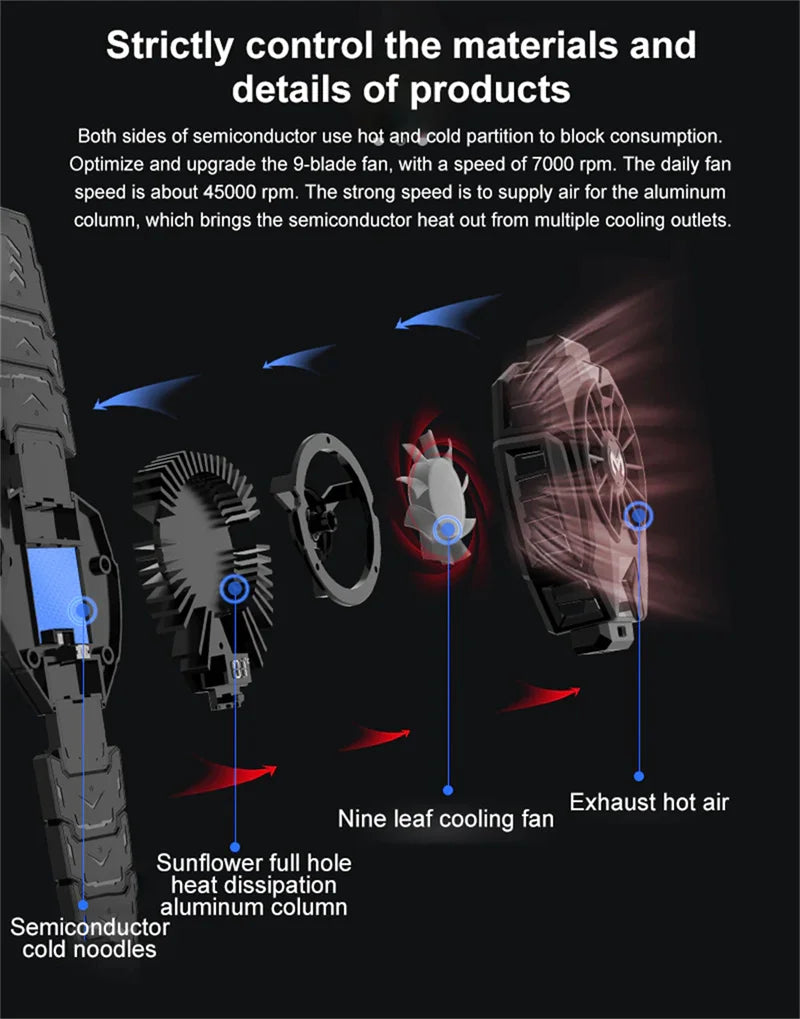 1. Three-speed adjustable wind power, 6000 speed, solve the problem of sweating and hot mobile phone