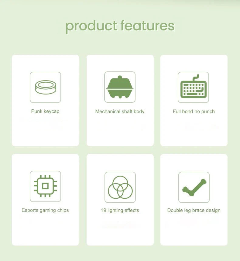 EWEADN V20 Punk Typewriter Mechanical Gaming Keyboard, 104 Keys Round Keycaps LED White Backlit, Key-wire separation design