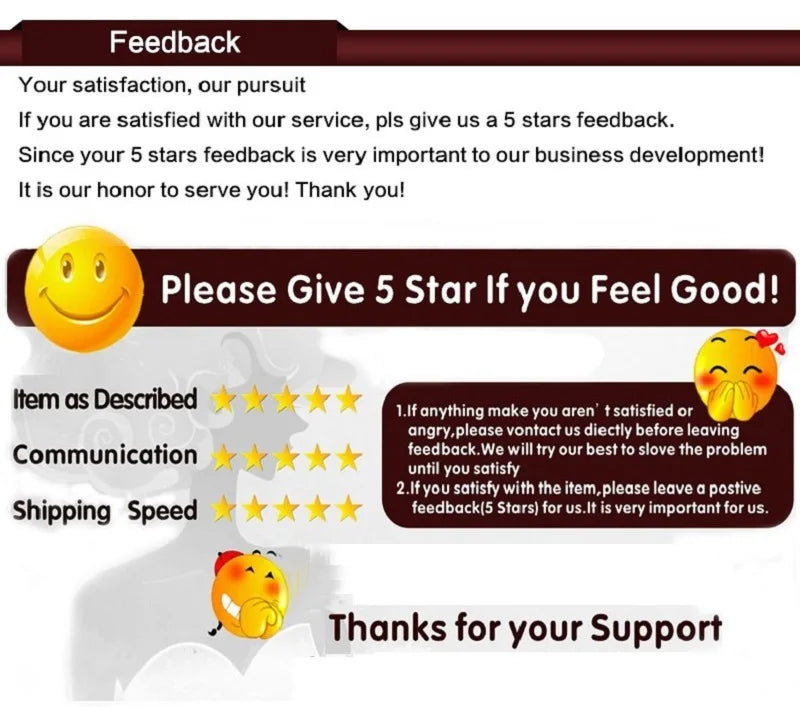 1. Your satisfaction and positive feedback is very important to us. Please give us a positive feedback and 5 stars if you are satisfied with our shoes and services.
