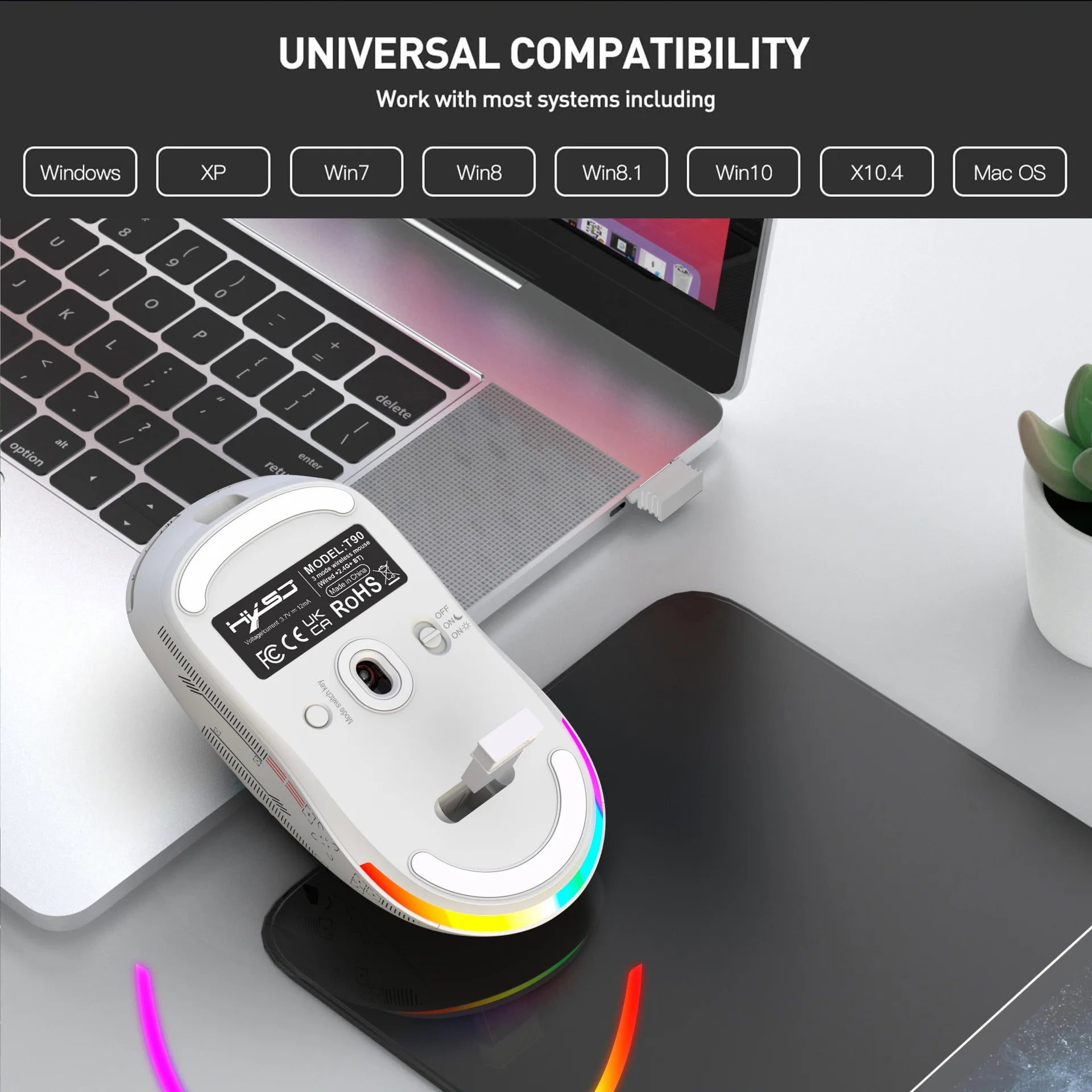 HXSJ T90 Thir-Mode wireless mouse (Wired+2.4G+BT) RGB Backlight 650mAh Gaming Mouse