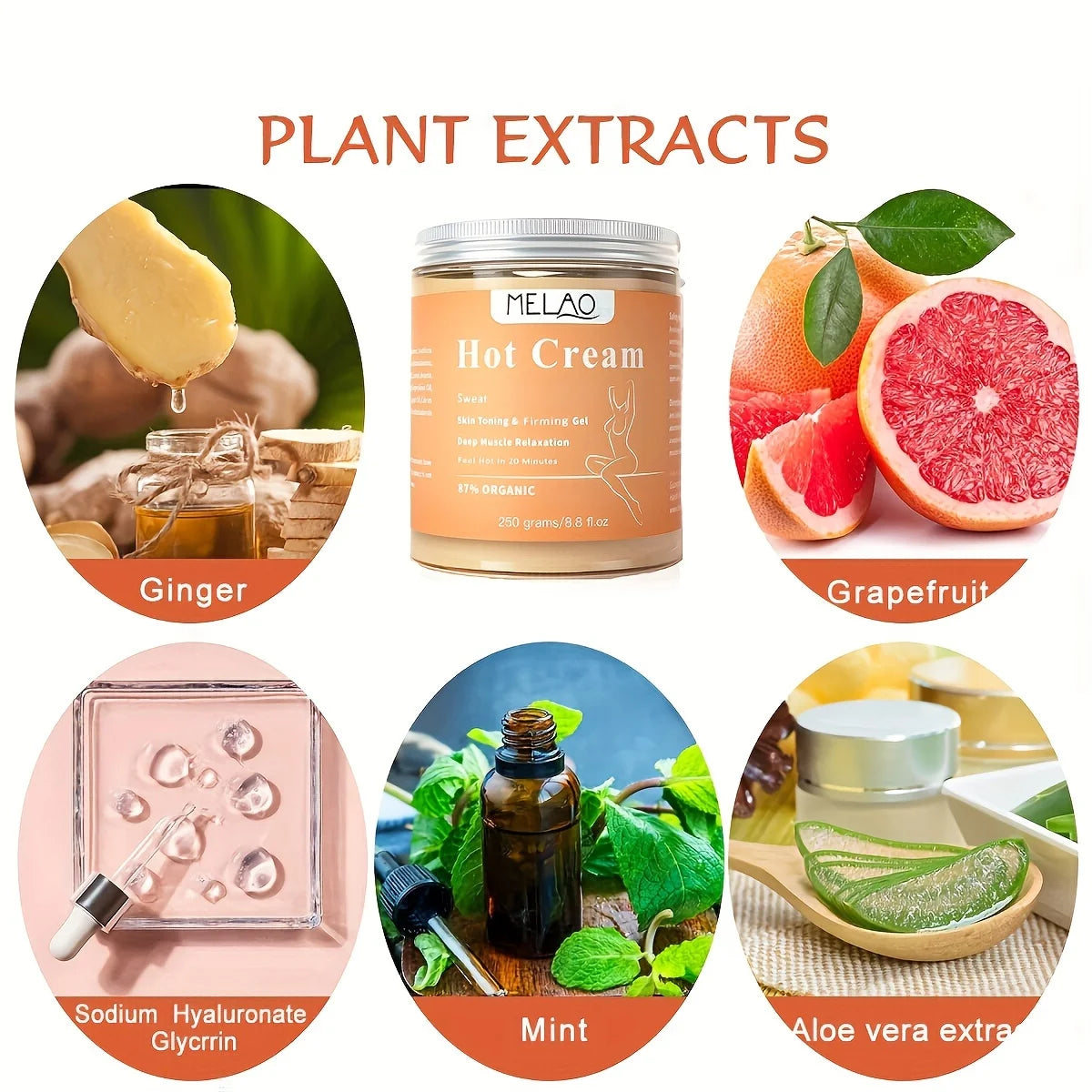MELAO Hot Cream Massage Gel - Natural and 87% Organic Anti Cellulite Slimming Lotion Fat Burning Massage Weight Loss Cream