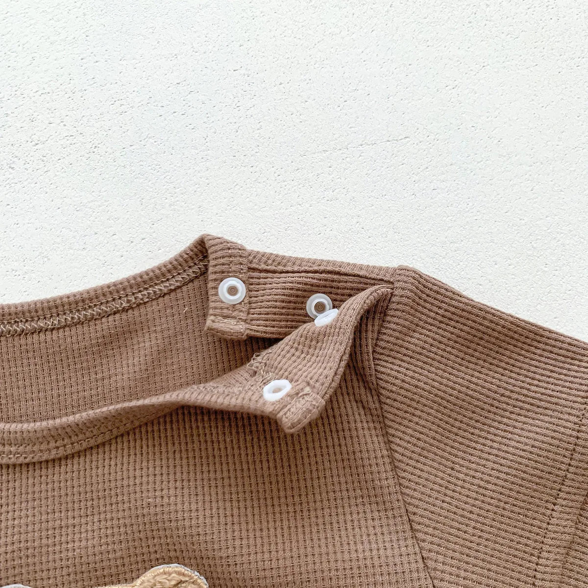 1. Adorable and unique patch bear design - The jumpsuit features a cute and unique patch bear design that is perfect for baby girls and boys. The bear adds an extra touch of cuteness to the outfit.