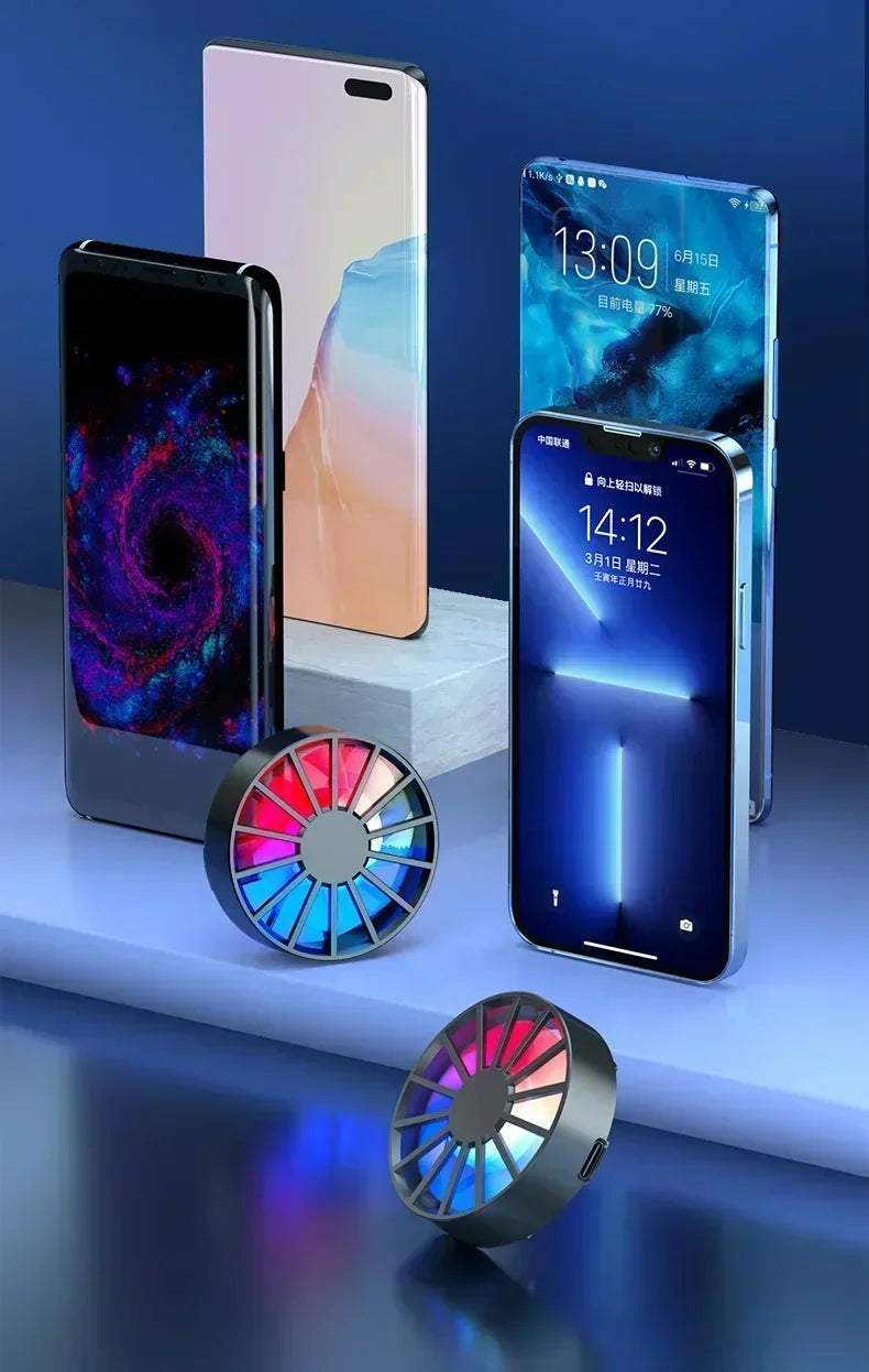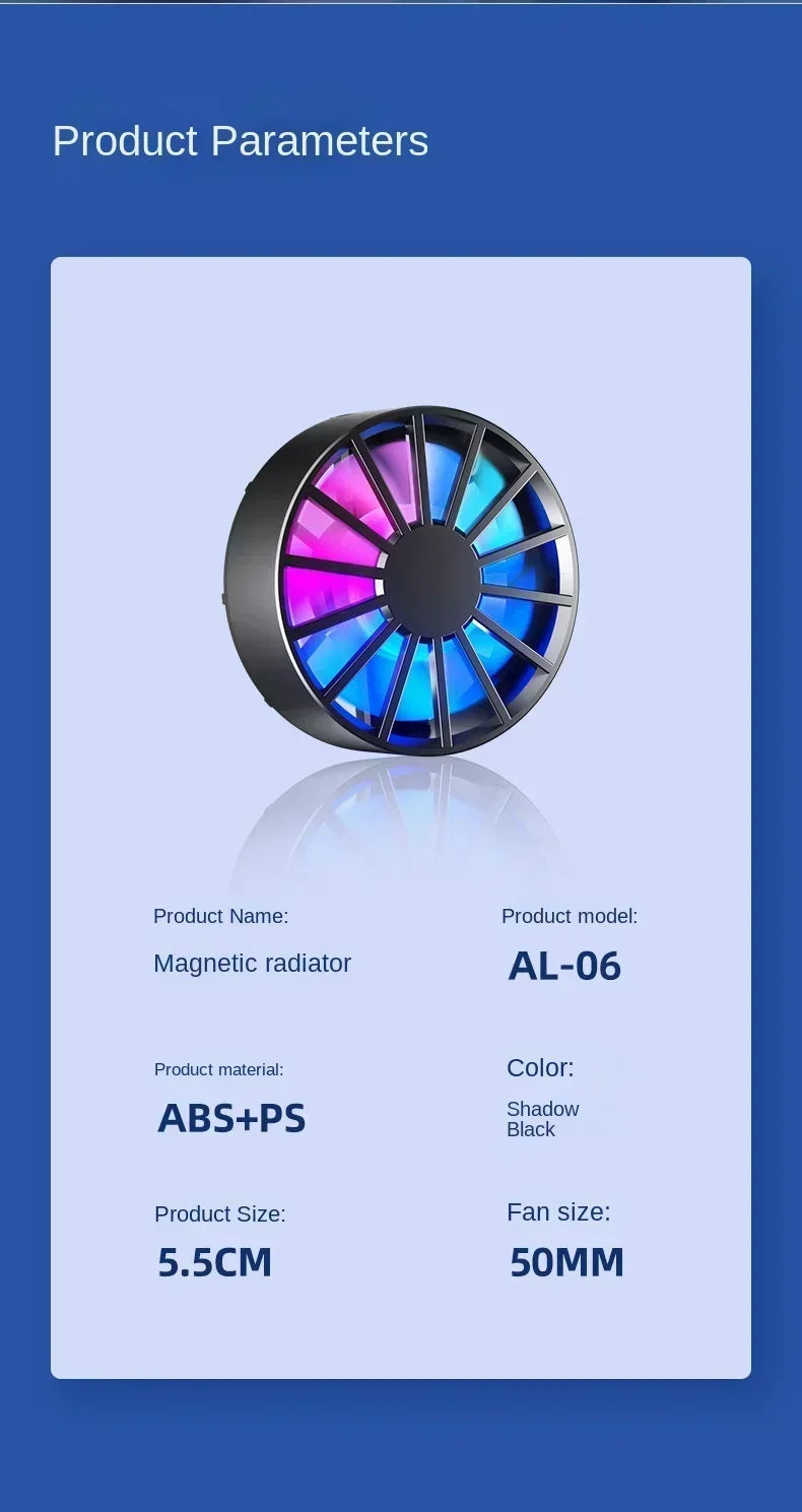 Phone Radiator RGB Light Air-cooled Light Weight Magnetic Low Noise Cooling Fan for Phone Tablet PUGB Genshin Game Fast Cooling
