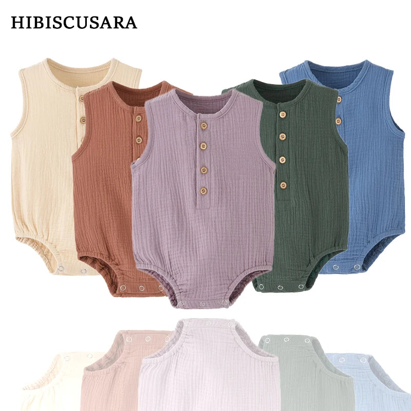Summer Solid Newborn Baby 100% Cotton Linen Bodysuits Boy Girl Sleeveless Romper Jumpsuit Soft Skin-friendly Thin Comfy
