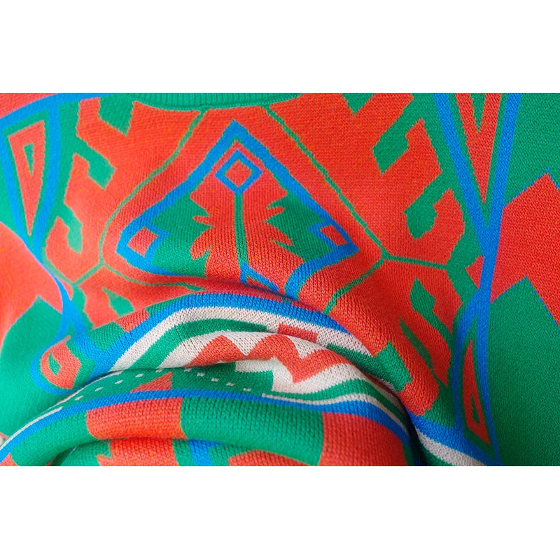 Summer Vintage Patchwork Geometric Pattern Knitted Sweater Women Fashion O-Neck Short Sleeve Knitted Pullover Tops Knitwear