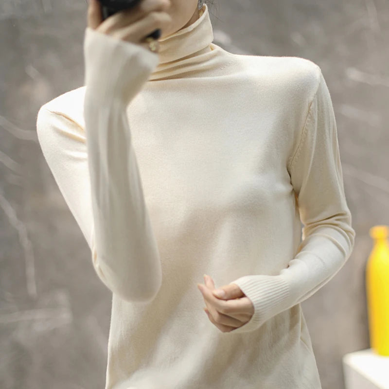 Turtleneck Women Sweater Autumn Winter Warm Bottiming Shirts Korean Fashion Long Sleeve Pullovers Slim Fit Casual Warm Knitwears